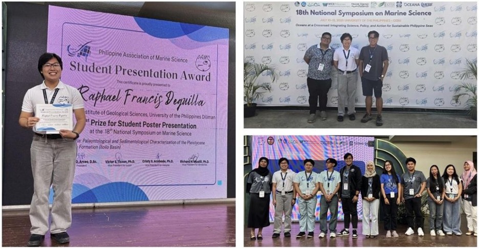 Raphael Francis E. Dequilla*, a recent BS Geology graduate from the National Institute of Geological Sciences (NIGS) and a member of the Nannoworks Laboratory, won First Place in the Student Poster Presentation category of the Nemenzo Award for Best Student Presentations at the 18th National Symposium on Marine Science (PAMS18), held from July 10 to 12, 2025, at the University of the Philippines Cebu. This marks the second consecutive win for NIGS and the Nannoworks Laboratory at the biennial event organized by the Philippine Association of Marine Science (PAMS), a leading organization dedicated to the advancement of marine science research, education, and sustainable practices in the country.