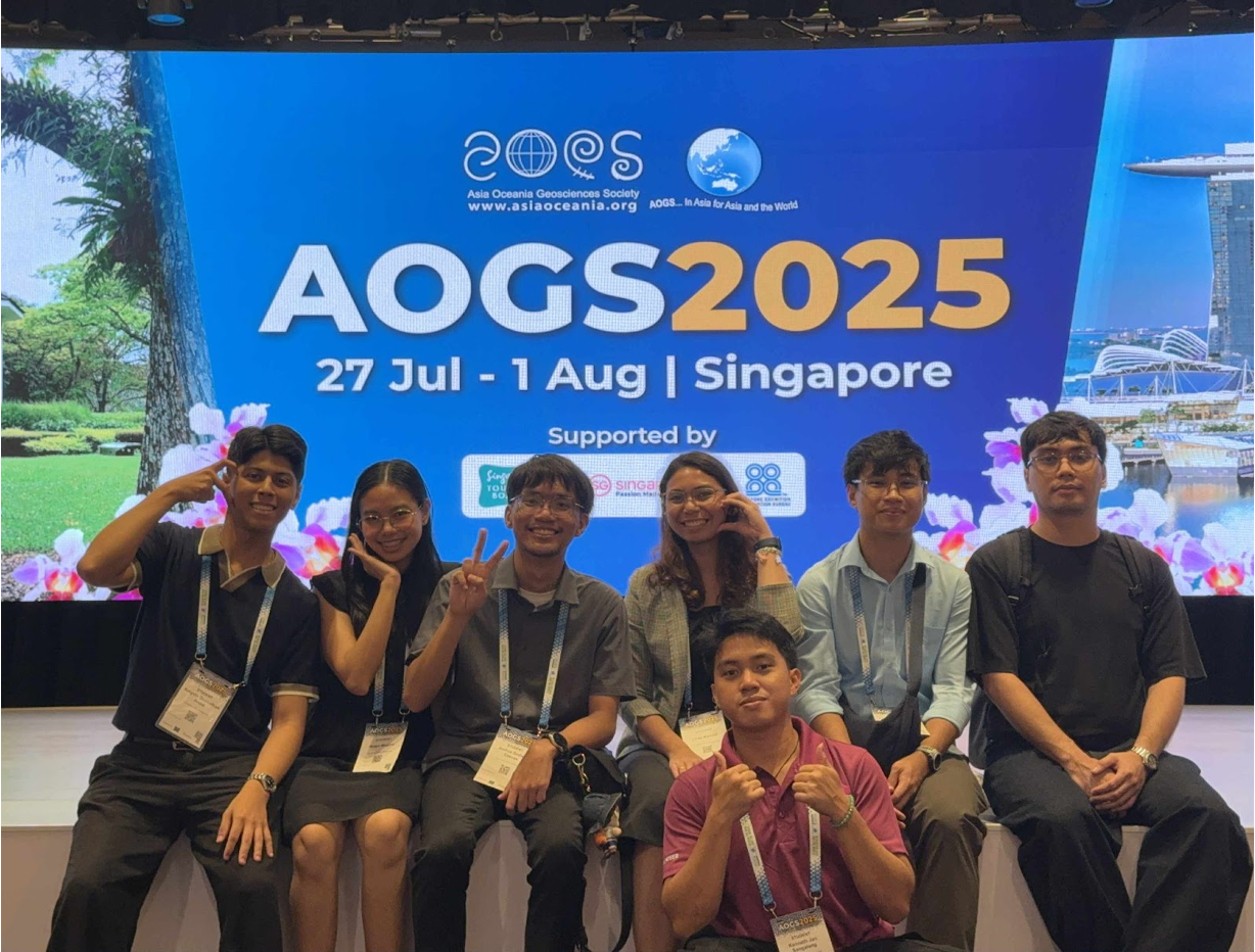 Several RWG graduate students actively participated in major international conferences. From July 27 to August 1, graduate students Mr. Lyle Andre Arenque, Mr. Armando Salvador Bambao, Ms. Chae Ann Malipol, Mr. Joshua Godwin Cuevas, Ms. Reign Megino, Mr. Kreyvin Geonathan Andal, and Mr. Kenneth Jan Sangalang participated in the 2025 Asia Oceania Geoscience Society (AOGS) conference held at the Marina Bay Sands, Singapore. The event provided opportunities to engage in scientific discussions, receive feedback and build networks with fellow geoscience researchers from across the globe.